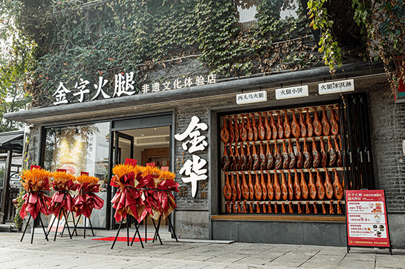 9月29日,金字火腿非遺文化體驗店在金華古子城歷史文化街區(qū)正式開業(yè),這是金字火腿古子城第二家門店、全國首家火腿非遺文化體驗店。非遺文化體驗店是集非遺技藝展示、火腿美食體驗、文創(chuàng)手信銷售等功能于一體的綜合空間,不僅有琳瑯滿目的火腿產(chǎn)品,還推出了現(xiàn)烤金腿小餅、現(xiàn)打火腿冰淇淋等新品,讓千年火腿以年輕化姿態(tài)走近消費者。