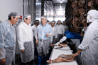8月22日,金華市委書記朱重烈專程赴金字火腿公司調(diào)研金華火腿產(chǎn)業(yè)振興工作。朱書記在公司領(lǐng)導(dǎo)周國(guó)華、馬曉鐘、吳月肖陪同下,走進(jìn)火腿文化展示館和產(chǎn)品展廳。