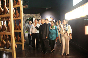 6月28日下午,省人大常委會副主任馮明一行在金華市人大常委會副主任陳志身等的陪同下,參觀考察了建于金字火腿內(nèi)的中國火腿博覽館和世界火腿博覽館,了解金華火腿的行業(yè)發(fā)展現(xiàn)狀。 金字火腿總經(jīng)理吳月肖向馮明一行介紹了金華火腿的歷史文化、傳統(tǒng)制作工藝、營養(yǎng)價值和儲存食用方法。馮明指出,金華火腿雖然是一個傳統(tǒng)行業(yè),但也要跟上形勢,通過各種渠道進(jìn)行推廣傳播,她特別強調(diào)了互聯(lián)網(wǎng)營銷在當(dāng)代企業(yè)發(fā)展中的作用,十分關(guān)心企業(yè)在這一方面的發(fā)展……